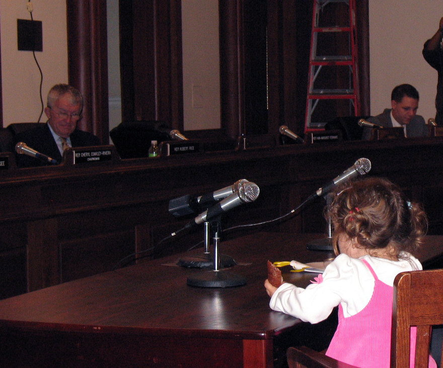 If you were a mother and wanted to make the case for paid sick days to care for your child, what would be better than to bring your child with you when you are about to testify to the Committee on Labor and Workforce Development on a bill about paid sick days? To be fair, the child sat quietly and ate a peanut butter and jelly sandwich and at one point tried to help read out her mother’s prepared testimony.