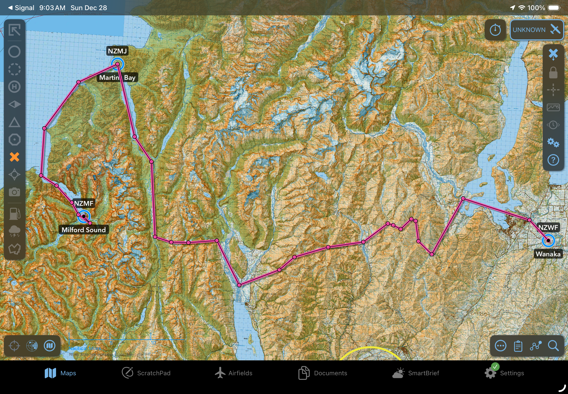 After a quick lap around the pattern at Wanaka (NZWF) I flew to Milford Sound (NZMF). In case you thought this was a flight on a bright sunny day, think again. It was a cloudy day and we were in the valleys, under the cloud deck.